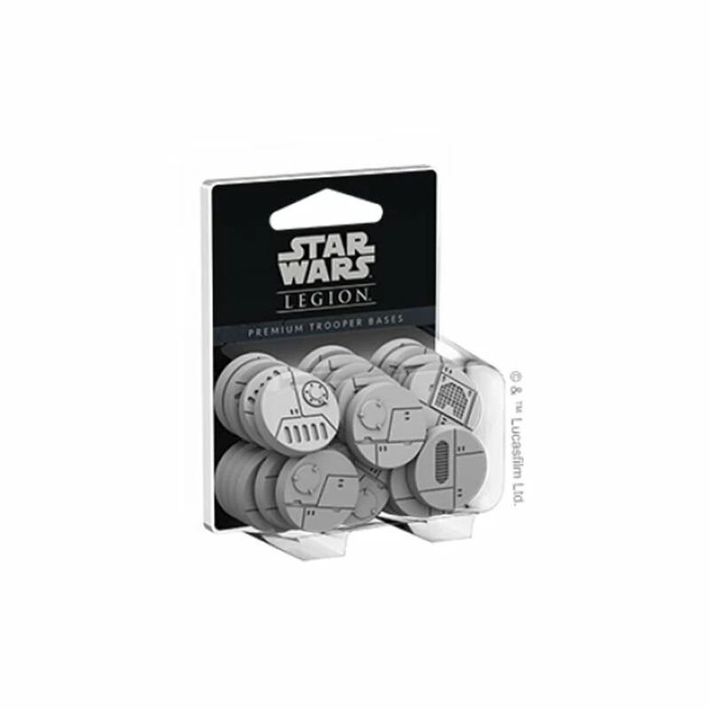 Enhance the look of your Star Wars™: Legion soldiers by placing them on premium plastic bases! The Premium Trooper Bases pack contains 32 premium 27-mm round bases that can be used to upgrade trooper units such as Stormtroopers or Rebel Troopers. The bases contained in the pack include four copies of eight unique sculpts, carefully designed to look like environments at home in the Star Wars galaxy, while their neutral gray tone of plastic gives you the opportunity to paint and customize your bases to fit your army’s style.