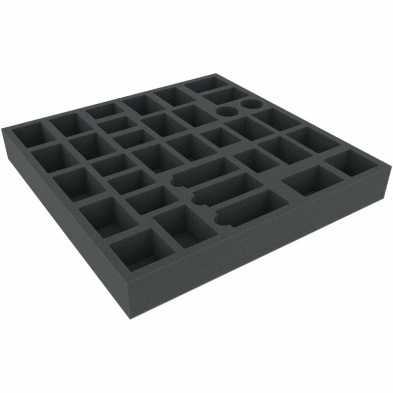 - 1x 345 mm x 345 mm x 45 mm Schaumstoffeinlage für Brettspiele – 35 Fächer