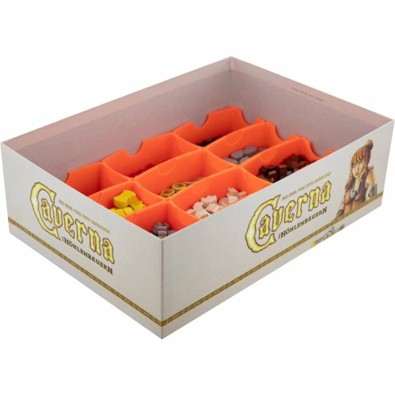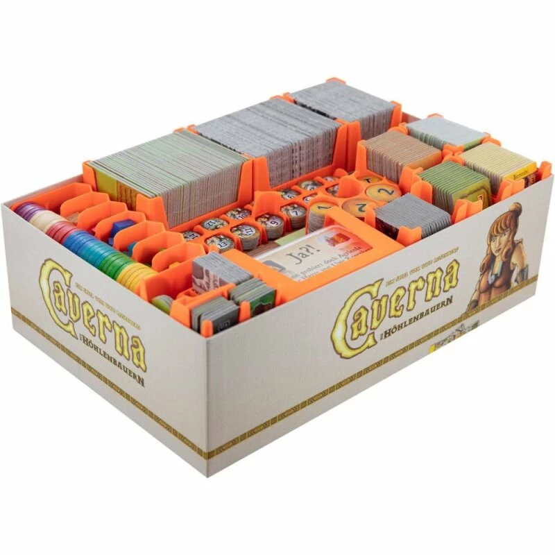 - Der Organizer bietet Platz für alle Spielmaterialien aus dem „Caverna – Die Höhlenmenschen“ Grundspiel von Lookout Games.