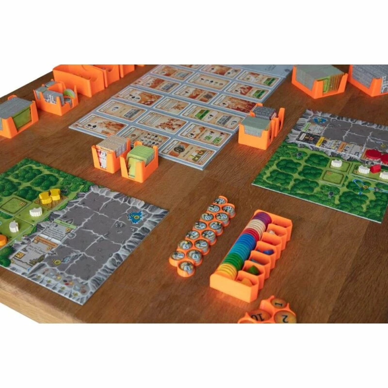 - Die Trays dienen nicht nur als Aufbewahrungslösung, sondern können direkt auf dem Spieltisch als Spielaufbauhilfe eingebunden werden.