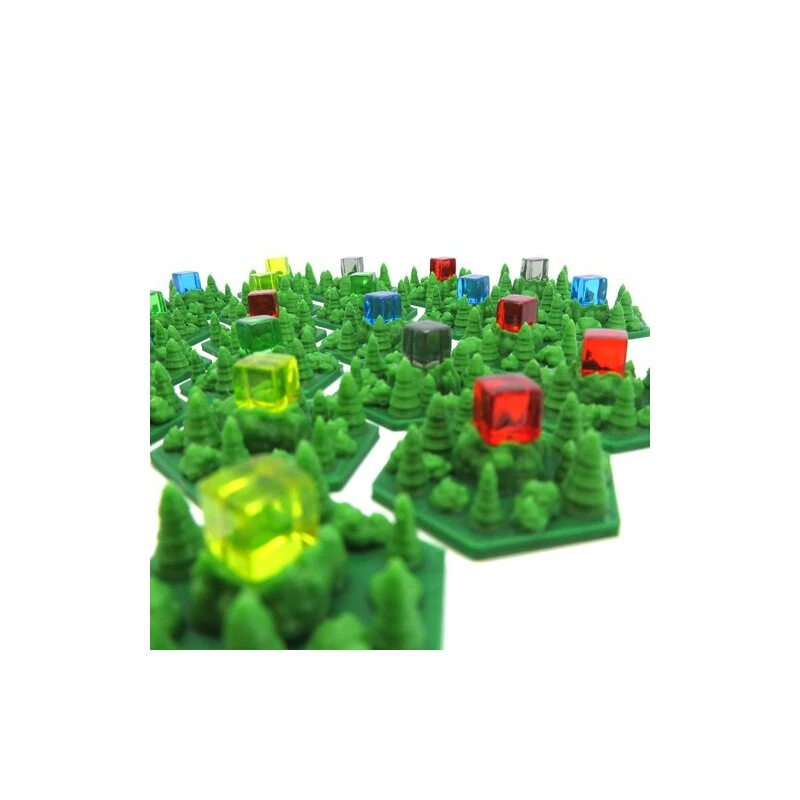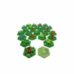 Sechseckige Wald-Plättchen für Terraforming Mars. Jedes Plättchen hat die gleiche Größe wie die im Spiel enthaltenen Pappplättchen und einen Platz, auf den der Farbwürfel gelegt werden kann.