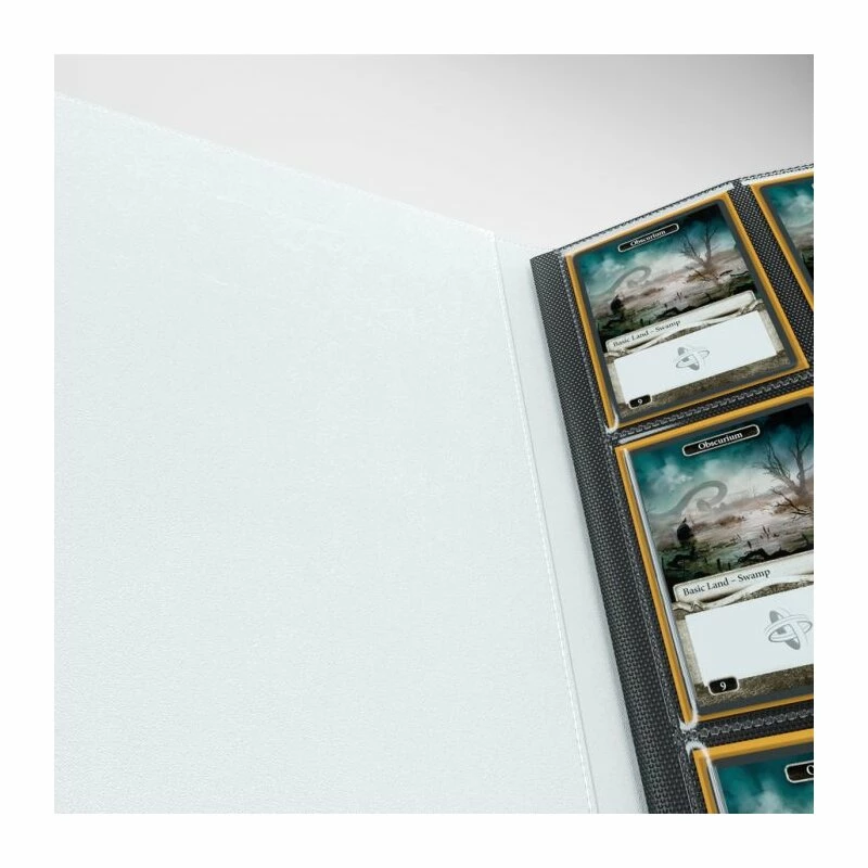 Das Album ist mit der innovativen Nexofyber-Oberfläche bedeckt, um ein angenehmes Touch & Feel zu erzeugen, ein eleganter Look. Die Innenseite aller Prime-Alben ist mit weichem Mikrofaserfutter bedeckt. Verstärkte, starre Abdeckungen zum Schutz der Kartensammlungen. Das Album enthält insgesamt 20 Seiten mit jeweils 18 Seitenladertaschen Kapazität von 480 Karten (auch mit doppelten Hüllen). Vier Fächer pro Seite eignen sich perfekt für PLAYSET-Sammlungen (Jeweils 4 Karten). Ein extra breiter Gummiband in passender Farbe schließt dieses Album sicher ab.
