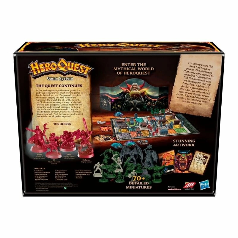 Im HeroQuest Brettspiel arbeiten die Heroen zusammen, um epische Herausforderungen zu bestehen, Schätze zu finden und die Mächte des Bösen zu besiegen. Bei diesem semi-kooperativen Brettspiel schüpft ein Spieler in die Rolle von Zargon, dem Spielleiter, während 4 mythische Heroen (Barbar, Zwerg, Elfe und Zauberer) sich verbünden, um in einem Labyrinth voller Monster und unheimlicher dunkler Kerker spannende Abenteuer zu bestehen.