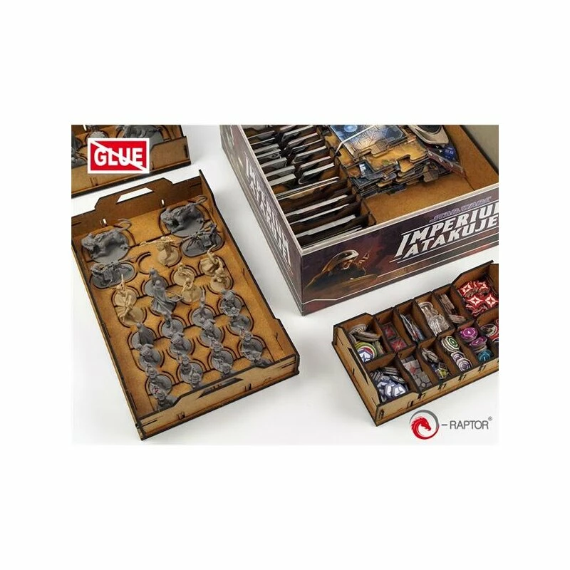 The insert is durable and made of high quality HDF. To assemble it, there is no glue required. It allows to hold all components inside the box, including board and manual.