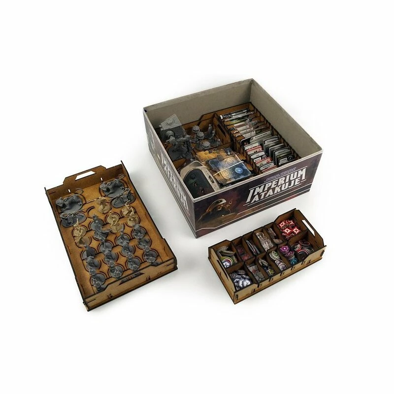 The insert is composed of 4 parts, 3 of which are smaller and can be taken out of the board game box and be even closer to players during gameplay. Additionally, thanks to a new method of storing Miniatures (see the pictures), storing them is more convenient and every Miniature can be found at first glance.