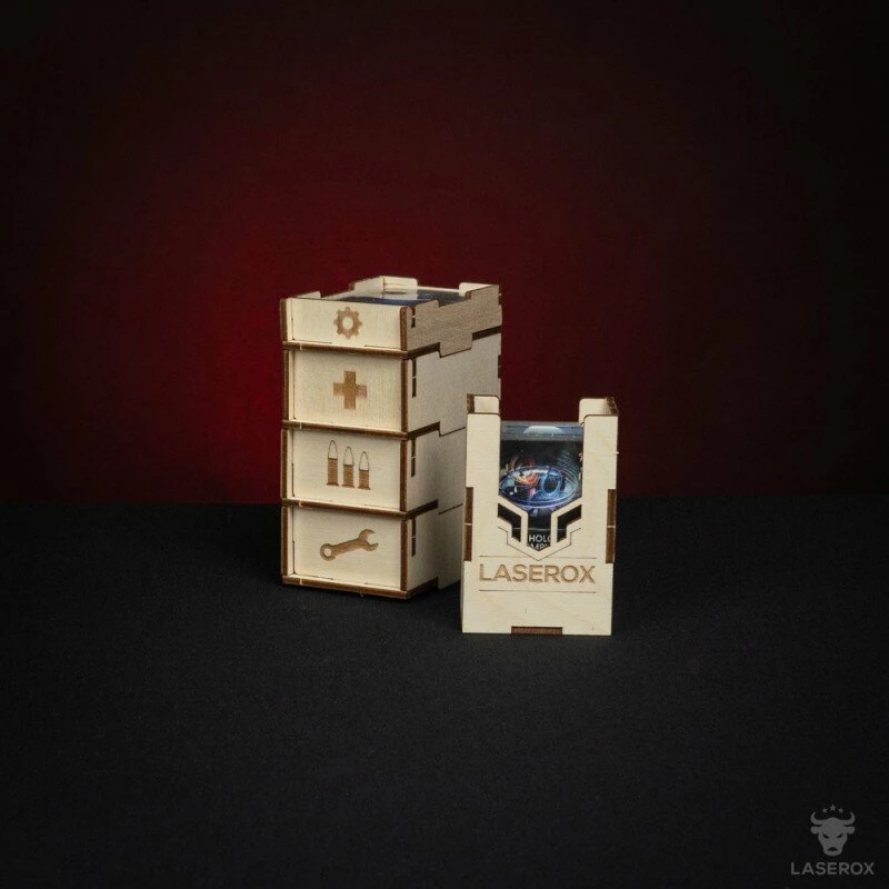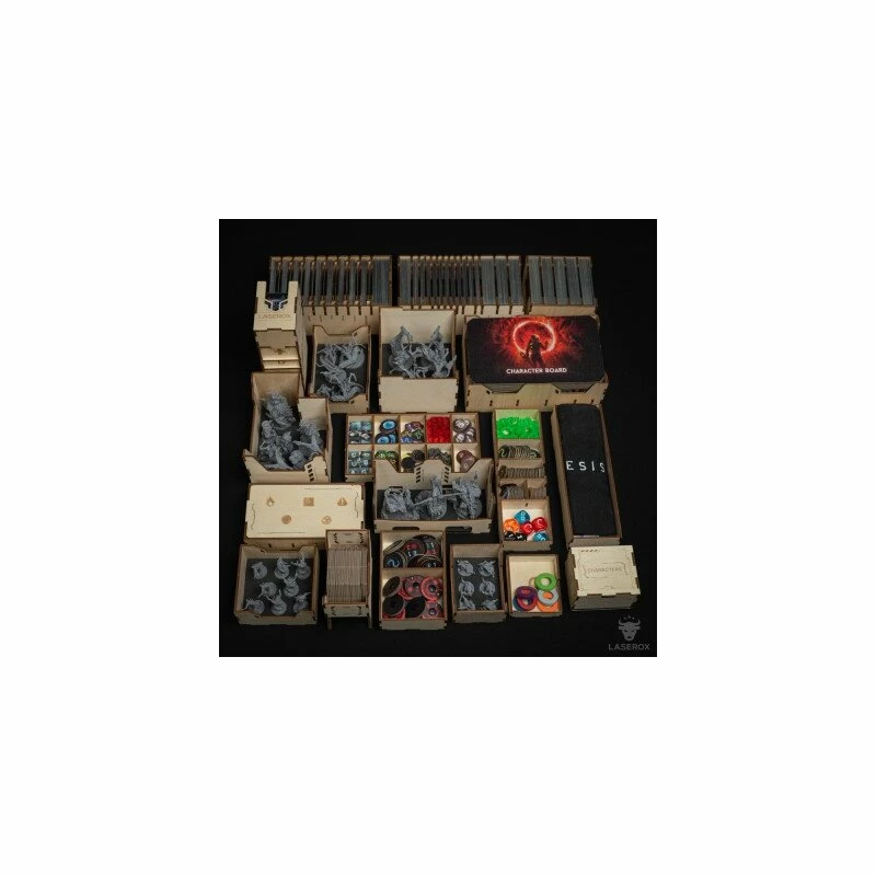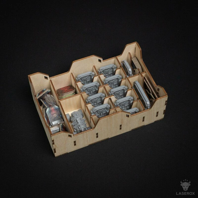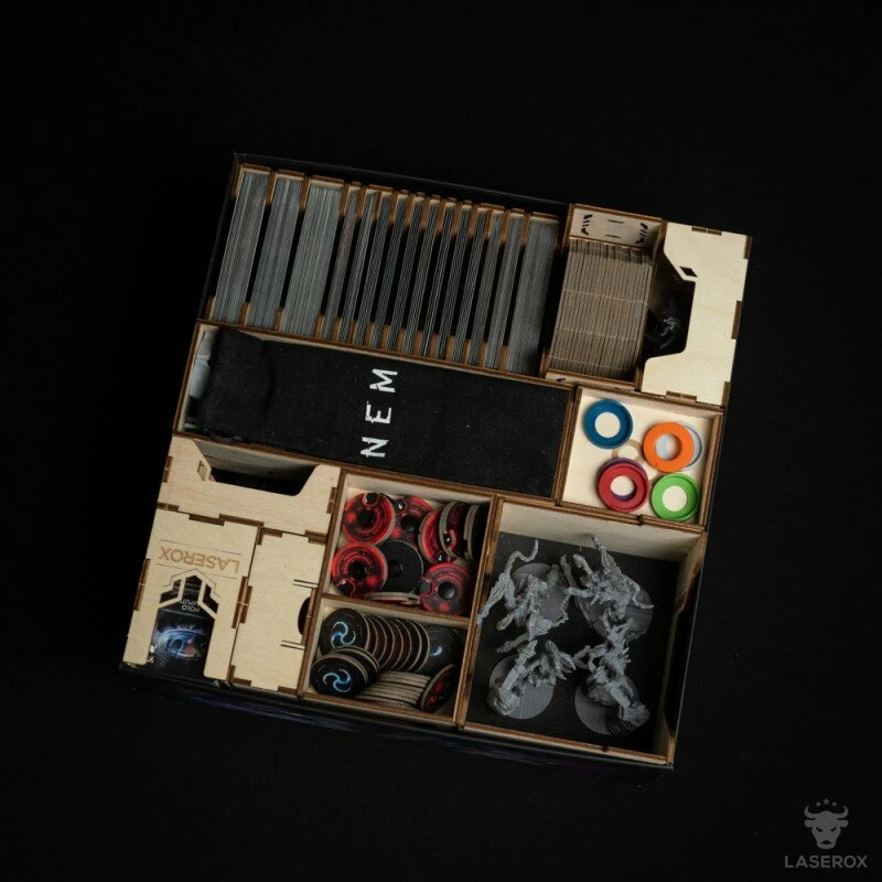Wir haben den Lockdown Organizer entwickelt, um alle Komponenten des Basisspiels und der Erweiterungsziele in einer Box unterzubringen. Die Ablagefächer für Spielsteine und Gegenstandskarten werden auch während des Spiels von großem Nutzen sein, ganz zu schweigen davon, dass die Zeit für den Spielaufbau und das Aufräumen schneller und einfacher wird, so dass mehr Zeit für das eigentliche Spielen bleibt.