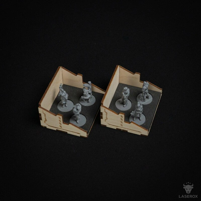 - verschiedene Ablagen für Spielsteine, Charakterbasen, Würfel und Stoffbeutel