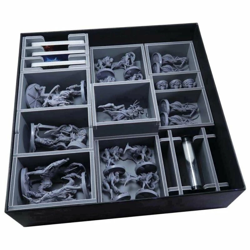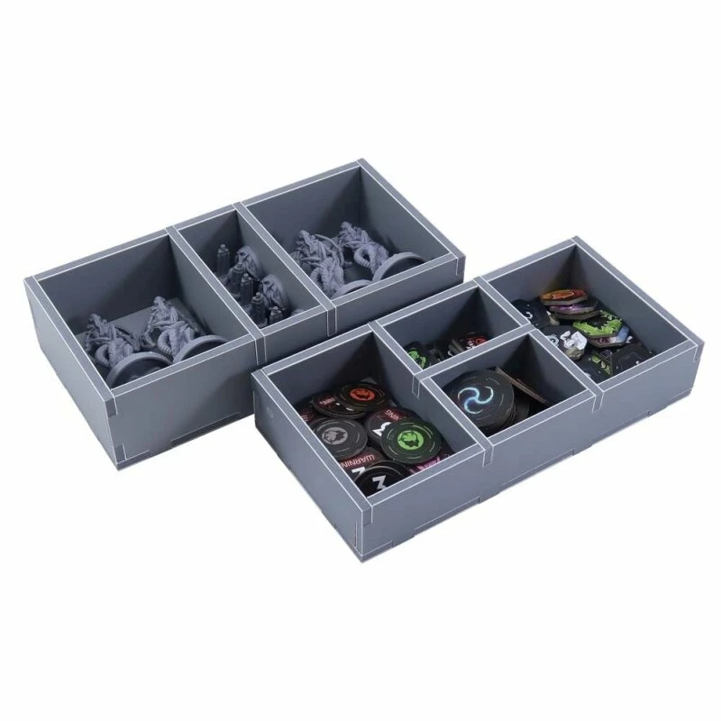 Einsatz kompatibel mit Nemesis: Aftermath & Void Seekers , einschließlich der Carnomorph und The Medic Erweiterungen. Das Design bietet sowohl effiziente Aufbewahrung als auch ein verbessertes Spiel. Viele der Fächer können während des Spiels genutzt werden und verkürzen die Auf- und Abbauzeiten erheblich. Der Einsatz ist für Spiele mit den Außenmaßen der Schachtel von 30,2 x 30,2 x 8,3 cm ausgelegt.