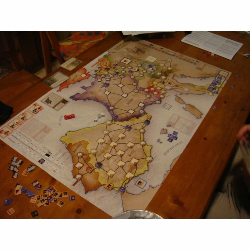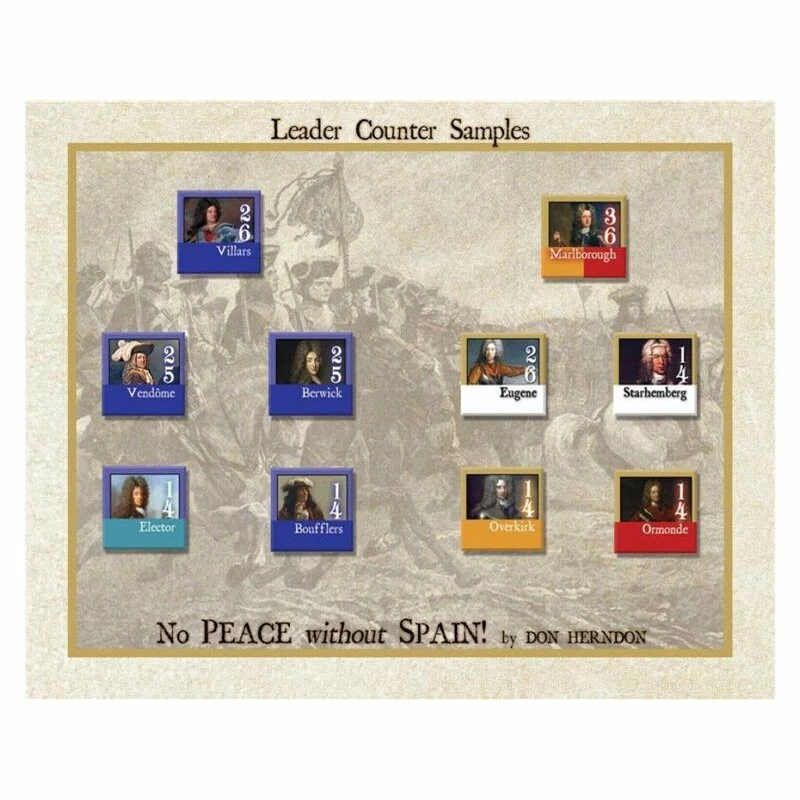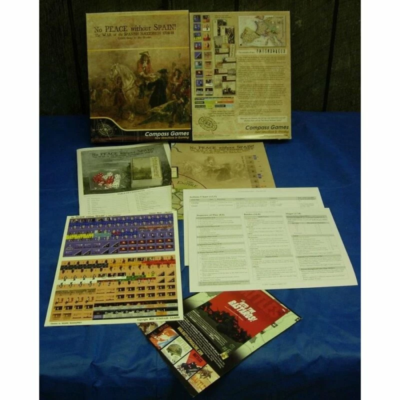 In November 1700, King Carlos II of Spain died without an heir. The long-standing feud between the Bourbons and Habsburgs erupted once again as both sides pressed their claim to the throne. No Peace Without Spain is a two-player game that elegantly recreates this epic struggle using a point-to-point map and a single deck of 55 cards. Action cards are used to activate armies for movement and siege, while event cards bring historical and special events into play that can swing the tide of fortune when least expected. Each turn represents one year, each corps represents 10,000 men of all arms and each leader represents a major commander and his staff.