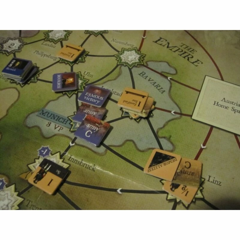 The map stresses the importance of fortresses in a war that was probably the high-point of formal siege warfare. Fortresses in this era rarely held out against a besieger that had the necessary time and manpower to conduct a proper siege, and the game neatly recreates this with a simple siege table that leaves room for unusually stout defenses or quick collapses.