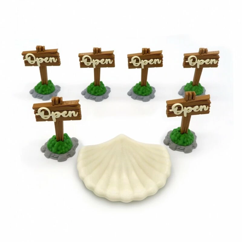 Charmante Komponenten für die Pearlbrook™-Erweiterung von Everdell™. Die offenen Schilder stehen fest auf den Spielkarten, während die Muschelschale die perfekte Größe hat, um mit Perlen gefüllt zu werden!