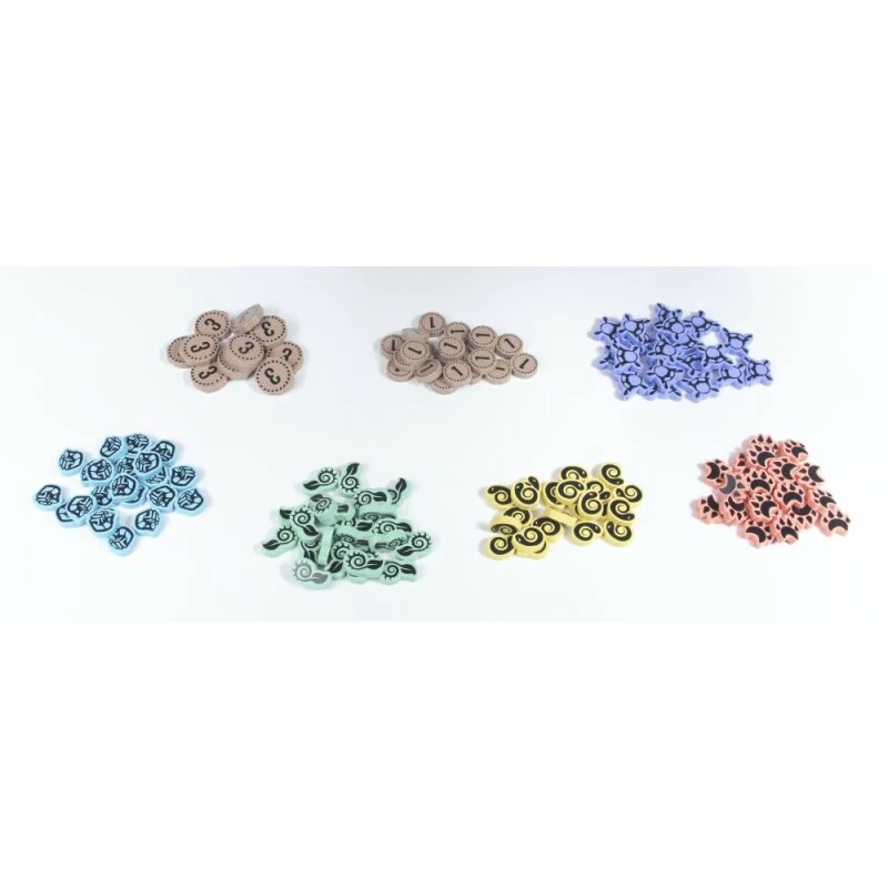 Ein Set mit 218 speziell gefertigtwn Holztokens, darunter Energie-, Angst-, Bestien-, Wildnis-, Krankheits-, Unruhen- und sogar die neuen Badlands-Tokens! Dieses Tokenset wird in einer farbigen Box geliefert, die ungefähr die Größe der Erweiterung Ast & Klaue hat!
