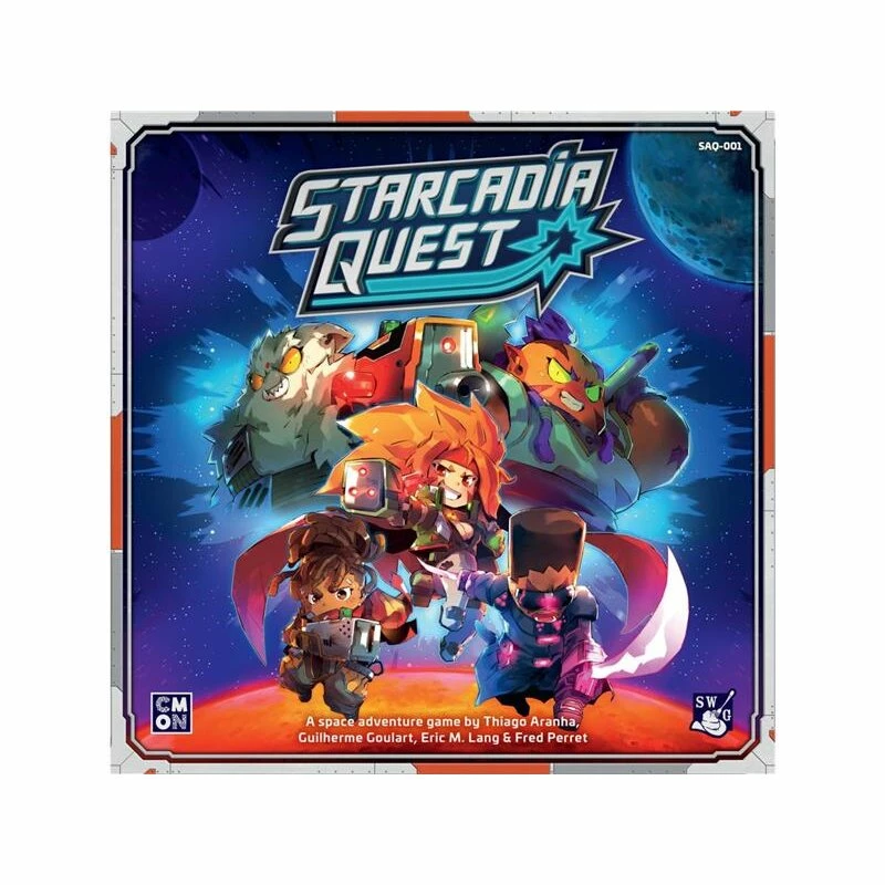 Starcadia Quest is the sci-fi stand-alone game in the Arcadia Quest family. The game employs the same Player vs. Player vs. Enemy mechanic of the originals, but with new rules and themes that are out of this world. Players take on the role of Crews of two Heroes as they must fight against the evil minions of Supreme Commander Thorne. Over the course of a branching campaign, players will fight alien monsters and each other, find new gear, explore the far reaches of space, and do their best to not become alien chow.