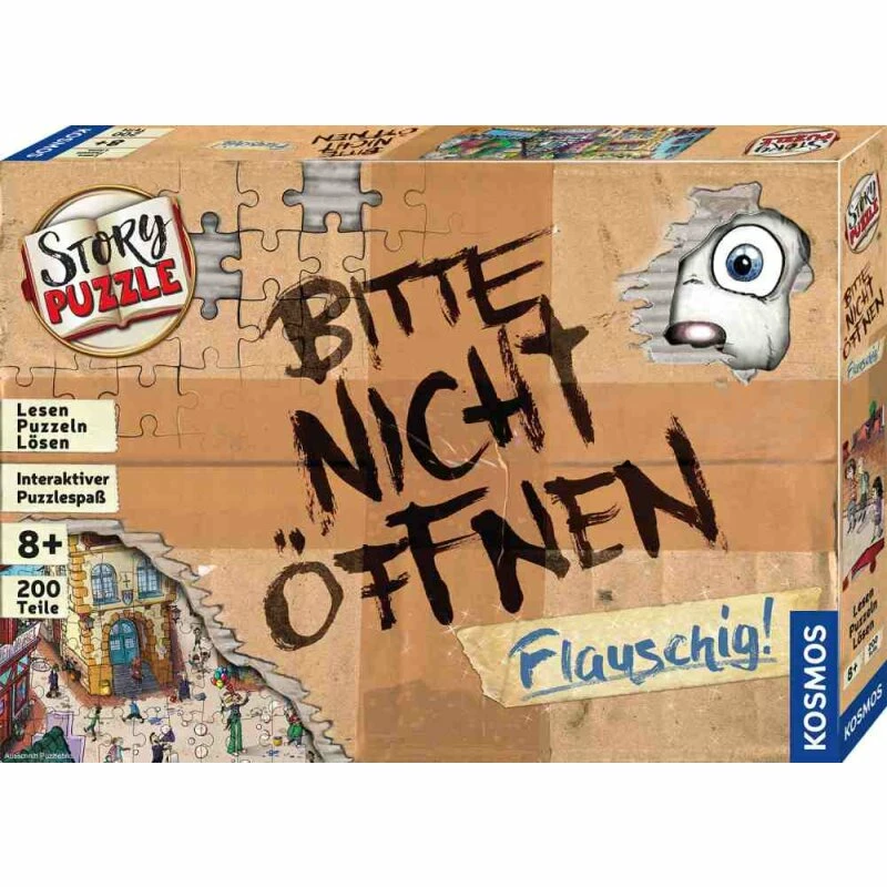In der Kleinstadt Boring ist immer etwas los! Nemo und seine Freunde Oda und Fred erleben ein neues Abenteuer. Und die Spielerinnen und Spieler sind dabei! Sie tauchen ein in eine exklusive Kurzgeschichte aus der Bestseller Kinderbuch-Reihe „Bitte nicht öffnen“. Dann wird gepuzzelt! Auf dem fertig zusammen gelegten Wimmelbild Puzzle geht der Spielspaß weiter! Hier sind viele kleine Rätsel und Suchspiele versteckt. Kurze Begleittexte führen die Puzzlerinnen und Puzzler ab 8 Jahren von einer Aufgabe zur nächsten und treiben so die Story voran. Das Abenteuer geht weiter und wird interaktiv erlebbar. Dieses besondere Story-Puzzle ist ein cooles Geburtstagsgeschenk!