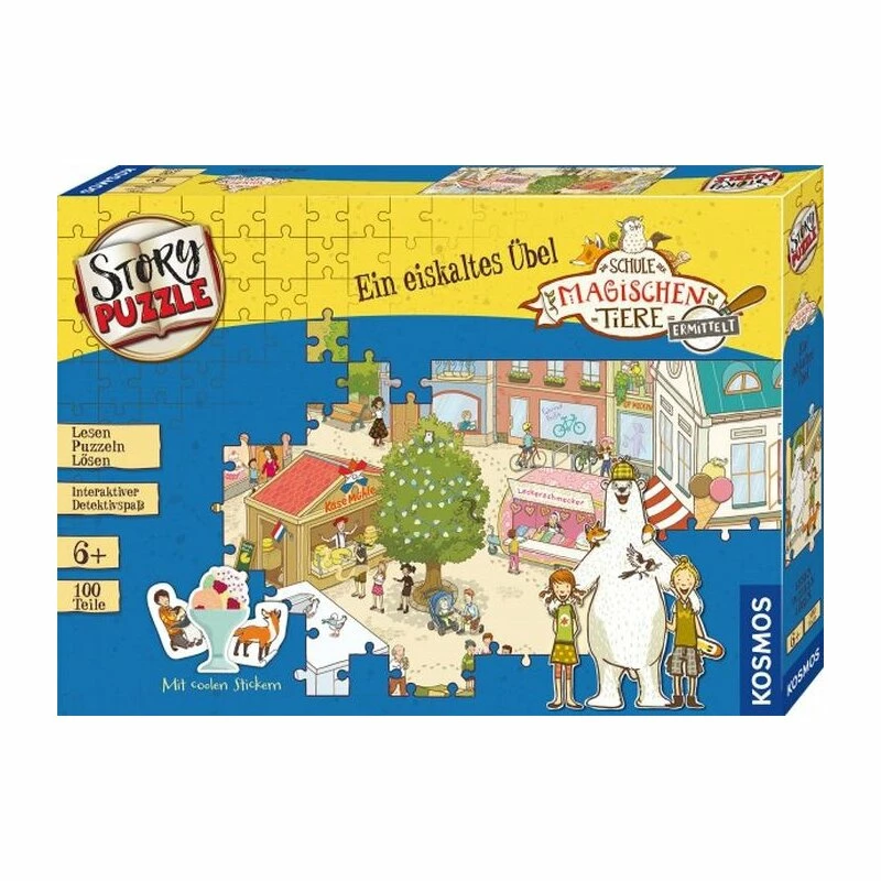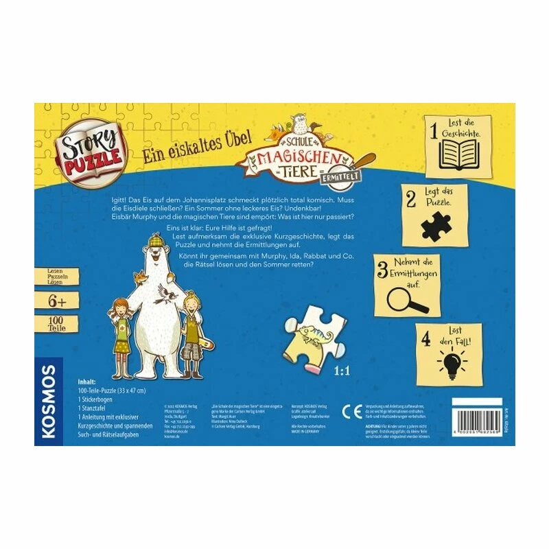Ein toller Stickerbogen, mit dem man das eigene Eis kreieren kann, macht dieses Story-Puzzle zu einem besonderen Erlebnis. Für Fans der Kinderbuch-Reihe „Die Schule der magischen Tiere ermittelt“ ist das Puzzle ein tolles Geburtstagsgeschenk.