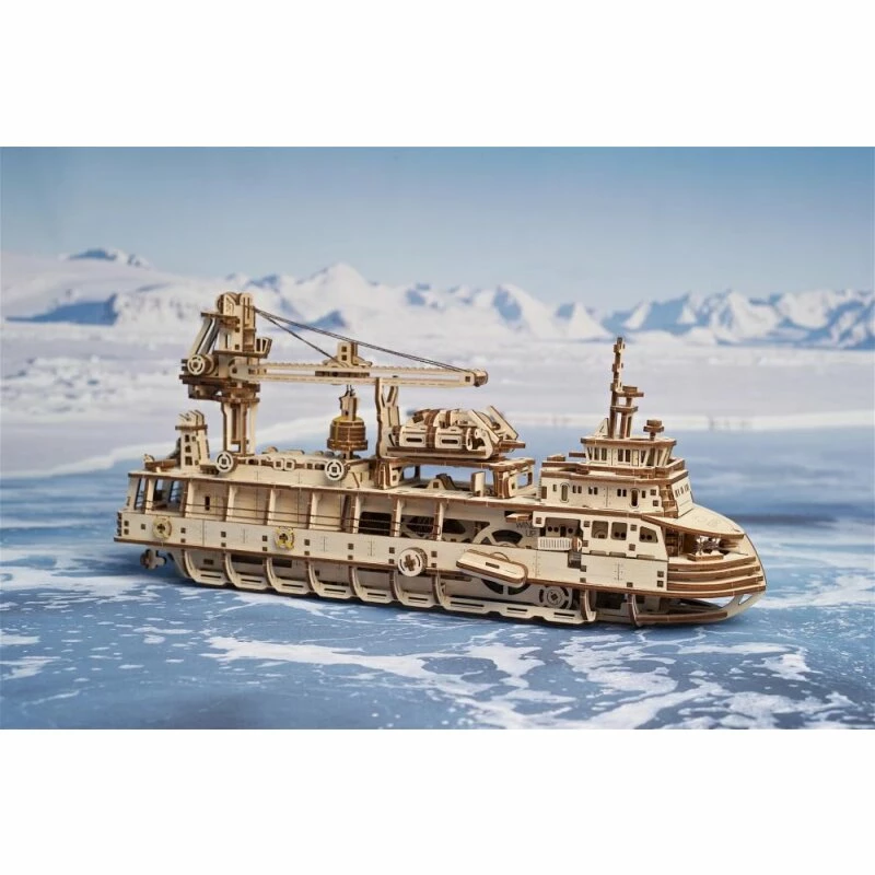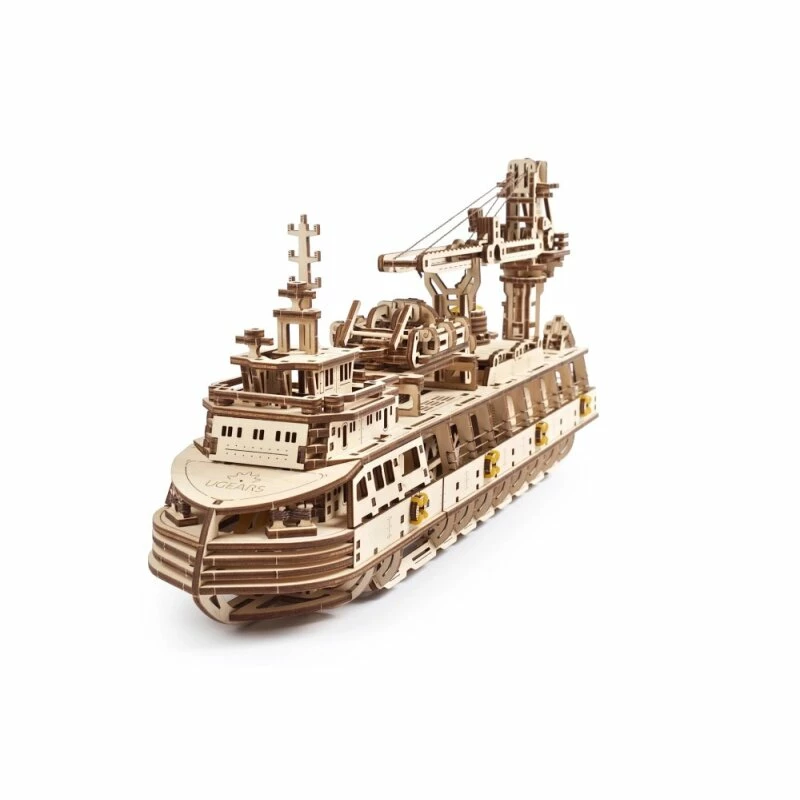 Ein ganz besonderes Highlight bietet der Markenhersteller UGEARS® seinem Modellbau verliebten Zielpublikum mit dem Modellbausatz „Forschungsschiff“. Das aus insgesamt 575 Holzeinzelteilen bestehende Holzkonstrukt ist eine kunstfertige Maßarbeit, welche die Zeiten großer Entdeckungen wieder aufleben lässt. Die Bezwingung des Nord- oder Südpolarkreises, des afrikanischen Kontinents oder südamerikanischer Breitengrade wäre ohne technische Weiterentwicklung nicht möglich gewesen.