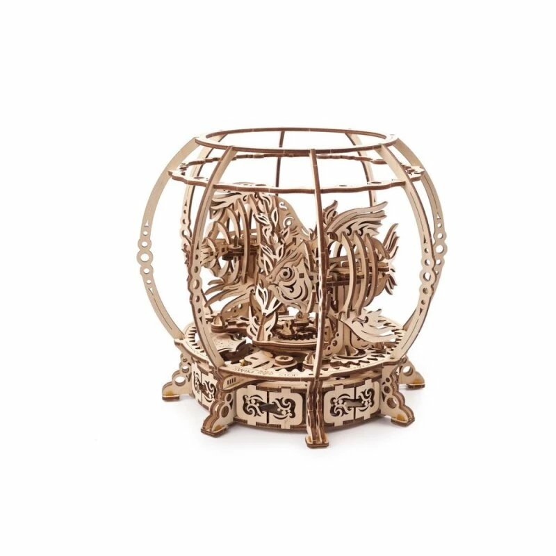 Nicht jeder kann sich den Herausforderungen oder Kosten der Einrichtung und Pflege eines Meerwasserbeckens stellen. Selbst ein einfaches Becken für Anfänger stellt eine bedeutende und anhaltende Investition von Zeit und Mitteln dar. Aber mit dem Mechanischen Aquarium von Ugears können Sie in die faszinierende Unterwasserwelt eintauchen — mit einem attraktiven und außergewöhnlichen Holzmodell, das Sie mit Ihren eigenen Händen konstruieren können, um es dann stolz vorzuzeigen. Wenn das Modell zusammengebaut ist, werden Ihre Familie und Ihre Freunde beim Beobachten der in ihrem Holzaquarium mit realitätsgetreuen Bewegungen herumschwimmenden Roboter-Fische stundenlang Freude haben. Dabei geben die Algengewächse gelegentlich den Blick auf das geheimnisvolle Seepferdchen frei. Und all das, ohne das Wasser prüfen oder wechseln zu müssen!