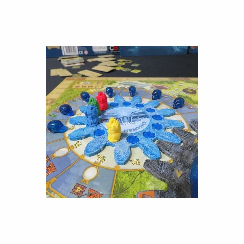 Komplettes Upgrade-Kit für Tzolk’in / Tzolkin, bestehend aus dem First Player Token, 4 Spieler-Paketen und Ressourcen-Token.