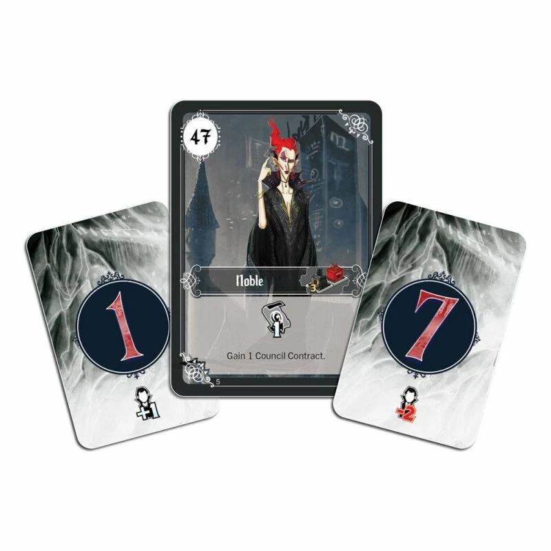 Your specialists also provide special scoring conditions that add exciting variety! Players will also be competing to develop innovations, find artifacts, and build castles and train stations to make their cities even more attractive to the rising vampire Population.