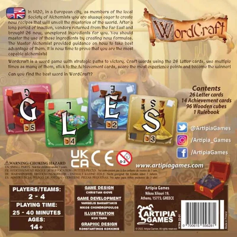 WordCraft ist ein Wortspiel mit Gebietskontrolle und strategischen Wegen zum Sieg. Bilden Sie Wörter mit Hilfe der 26 Buchstabenkarten, konzentrieren Sie sich auf die Erfolgskarten, sammeln Sie die meisten Erfahrungspunkte und gewinnen Sie.